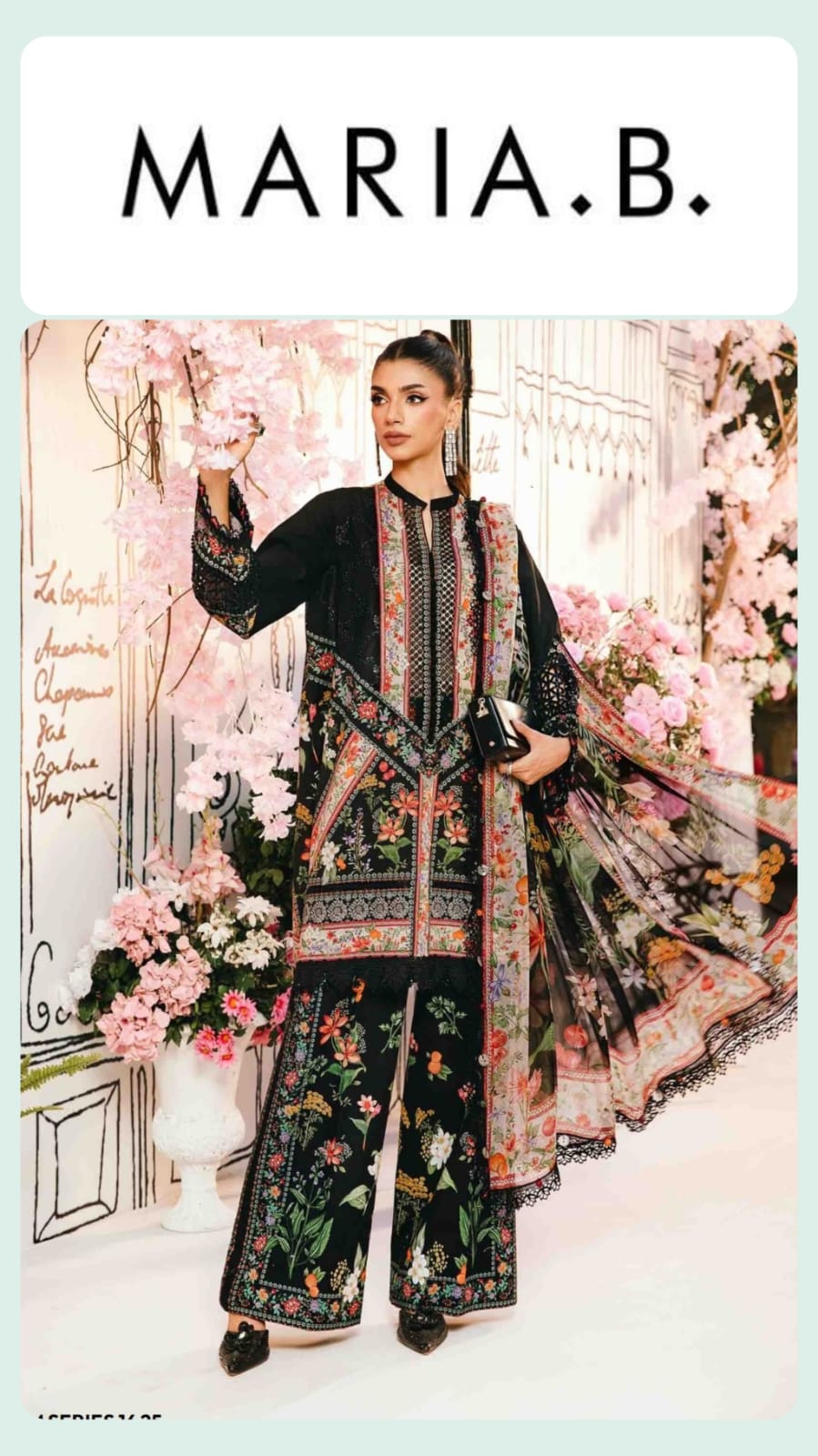 Maria B M Series Unstitch 3pc Suit Collection has been styled in the image for photography and illustrative purposes.