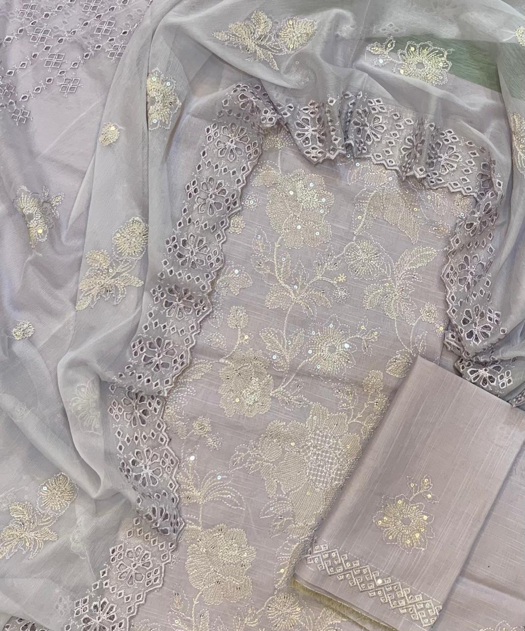 Bamber Chiffon Chikankari Cutwork Embroidered Dupatta