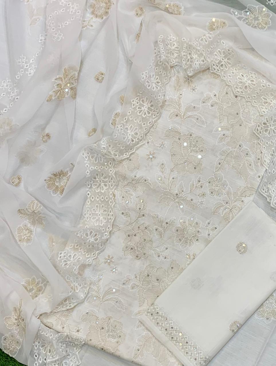 Bamber Chiffon Chikankari Cutwork Embroidered Dupatta