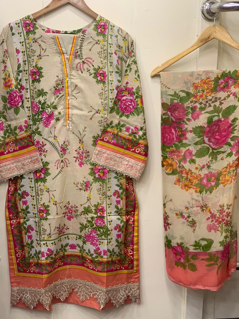Details:lawn Printed Embroidered Stitch suitPrinted Chiffon Dupatta & Lawn PrintedPlain Trouser Additional Details:Basics Lawn stitch Collection has...