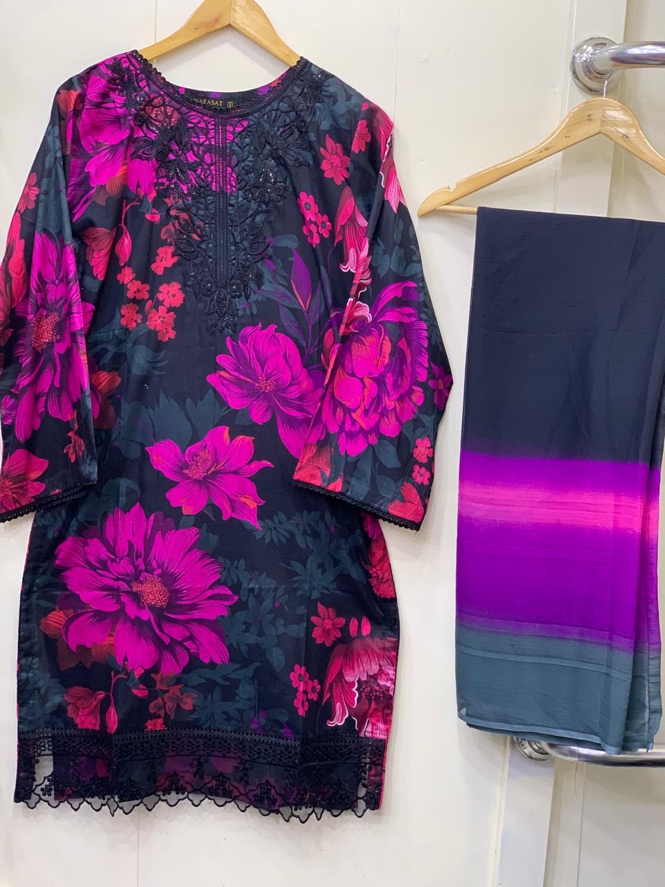 Lawn printed Embroidered Stitch 3pc suit