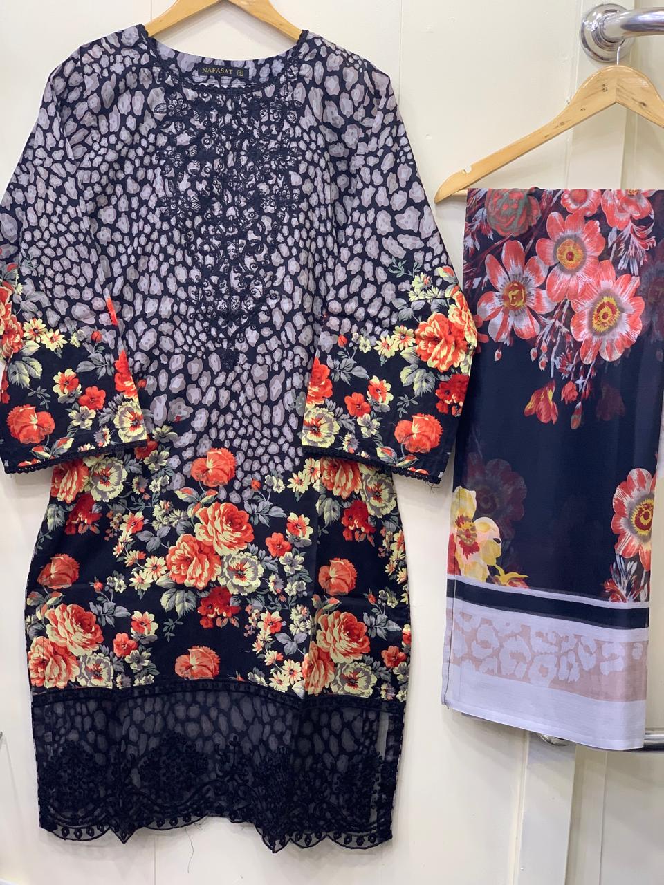 Details:Lawn printed Embroidered Stitch 3pc suit with digital printed chiffon duppata  Additional Details:Basics Lawn Vol-04 stitch Collection...