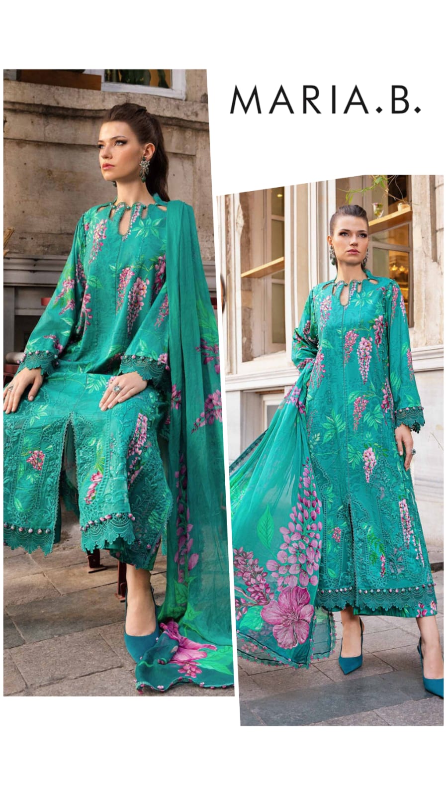 Maria B M-Series Lawn Collection has been styled in the image for photography and illustrative purposes.