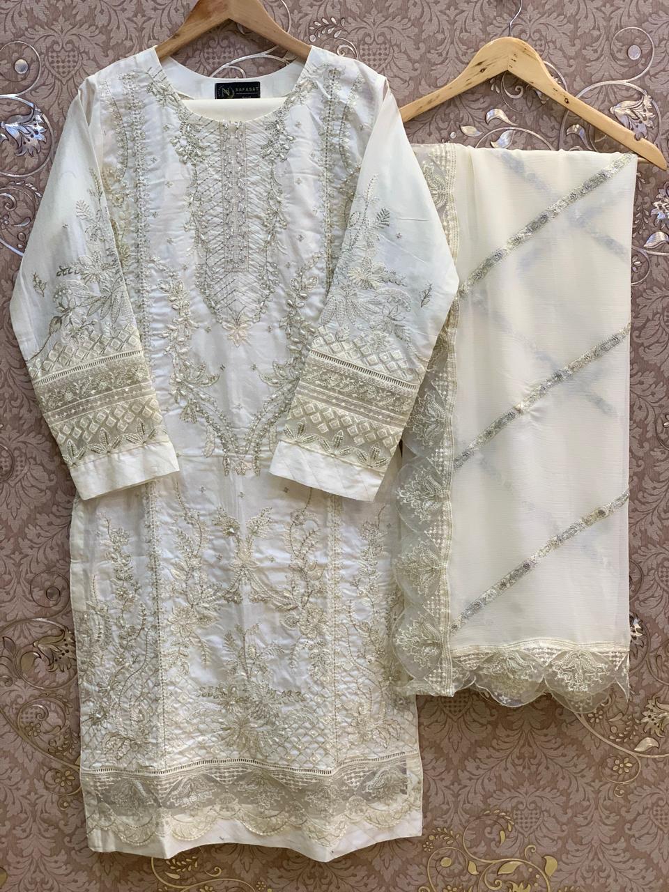 Details:Cotton Embroidered ShirtReady to wear Embroidered Chiffon DupattaPlain Trouser Additional Details:Nafasat Luxury Cotton Embroidered Stitched Collection  has...