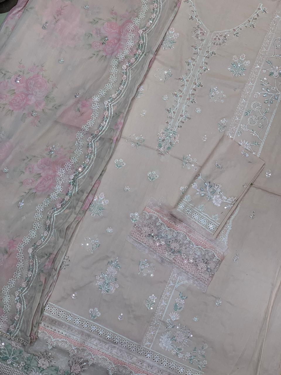 Details: Lawn handwork EmbroideredEmbroidered shirtChiffon printedEmbroidered duppataDyed Cambric Trouser Additional Details:Rang e Haya Vol 4 Unstitch 3piece Collection...