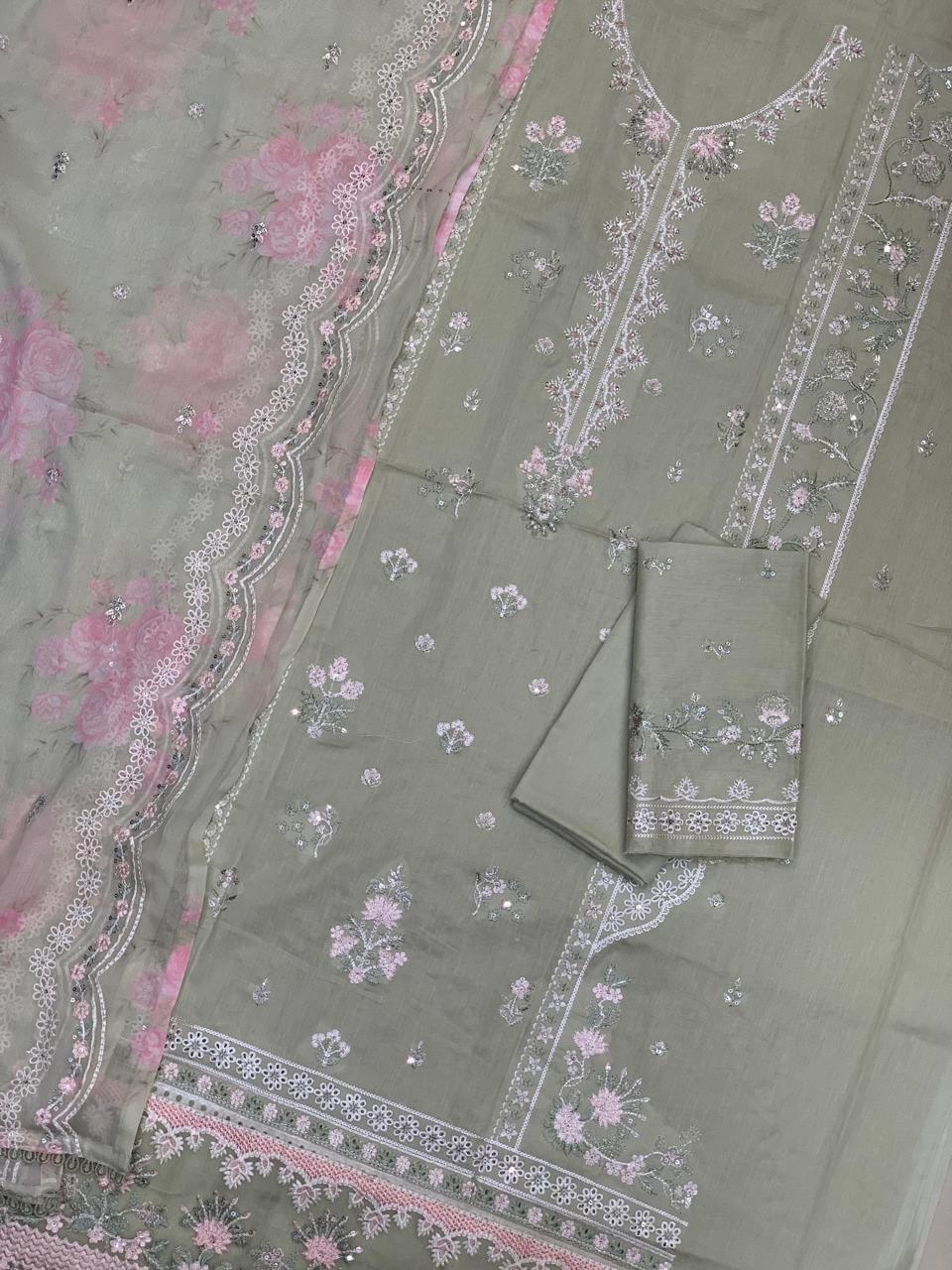 Details: Lawn handwork EmbroideredEmbroidered shirtChiffon printedEmbroidered duppataDyed Cambric Trouser Additional Details:Rang e Haya Vol 4 Unstitch 3piece Collection...