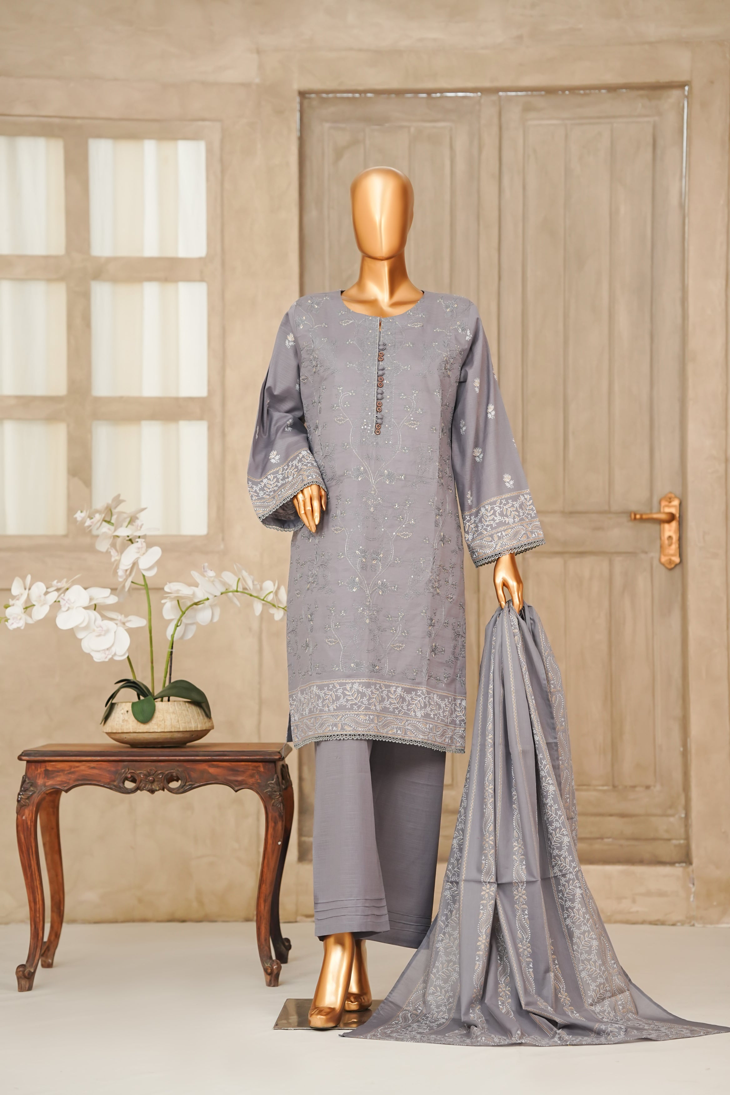 SHAH MEENA Table printed Embroidered Collection Vol 1,25 has been styled in the image for photography and illustrative purposes.